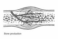- Bone production begins when the clotted blood formed by inflammation is replaced with fibrous tissue and cartilage (known as soft callus). As healing progresses, the soft callus is replaced with hard bone (known as hard callus), which is visible on x-rays several weeks after the fracture.